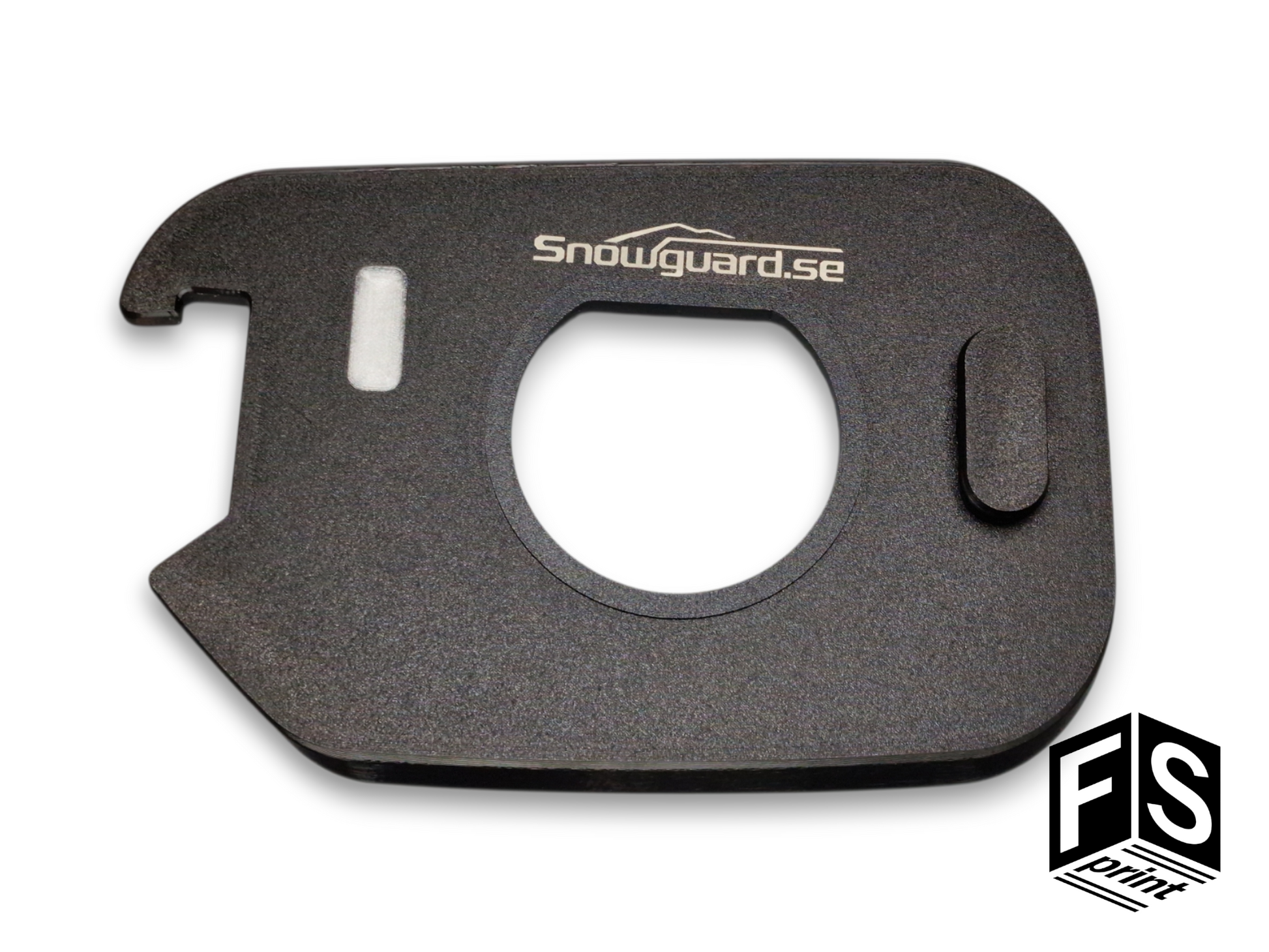 Skyddet hakas på gångjärnsarmen och låses fast m.h.a. ett vred vid laddluckans låsmekanism och skyddar utrymmet från oönskade snömängder.