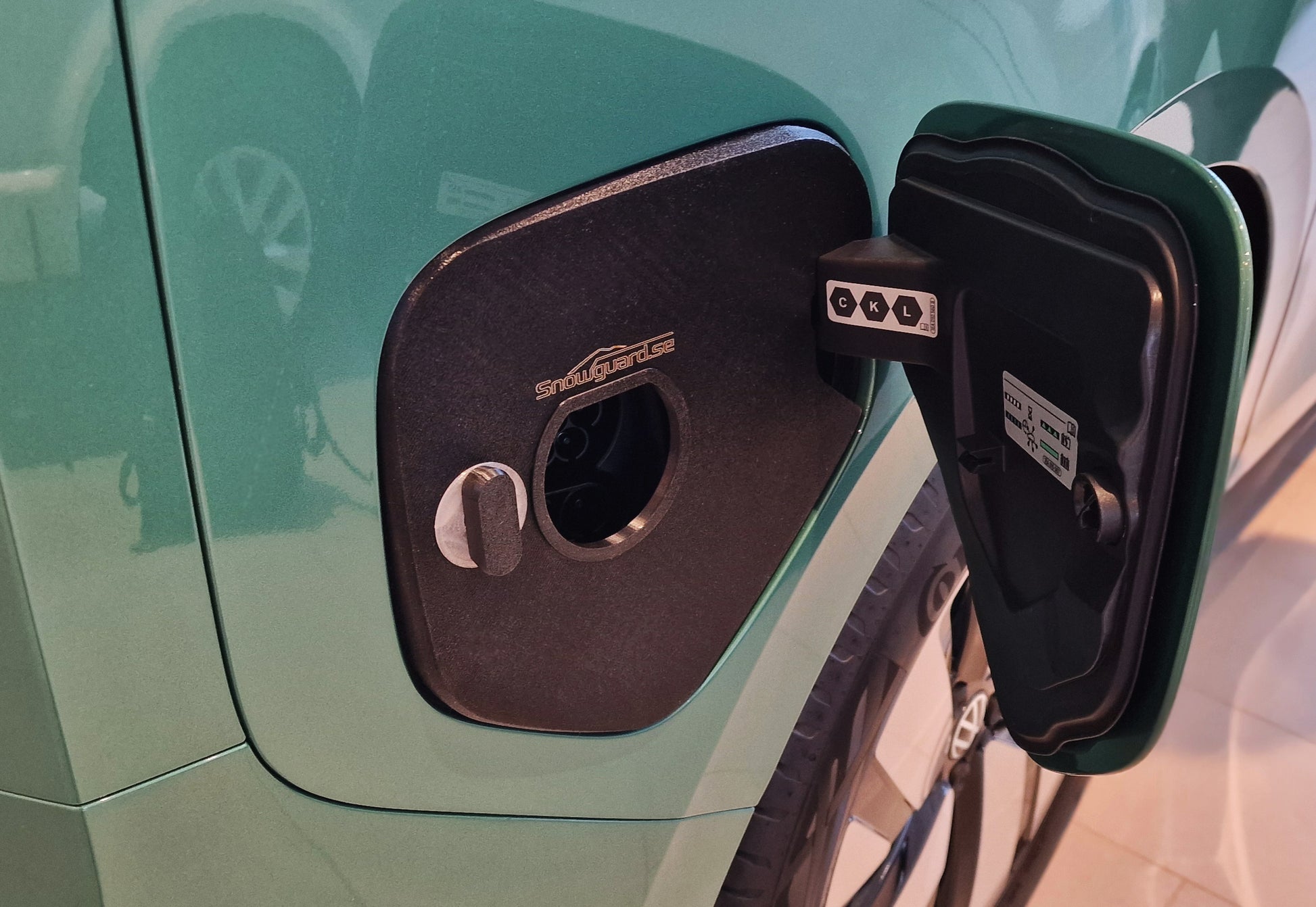 CCS - För hemmaladdaren som även snabbladdar - Det här skyddet har en löstagbar lucka för laddning med CCS-kontakt (DC-/snabb-laddare).