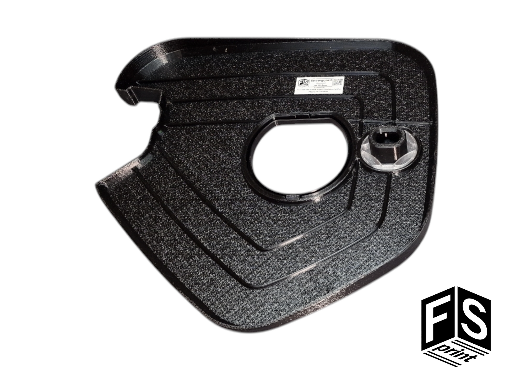 Skyddet hakas på gångjärnsarmen och låses fast m.h.a. ett vred vid laddluckans låsmekanism och skyddar utrymmet från oönskade snömängder.